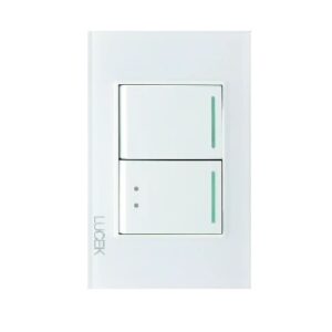 PLACA CON 1 INTERRUPTOR SENCILLO Y 1 DE ESCALERA DE 1.5 MÓDULOS. CRISTAL BLANCO BLANCO