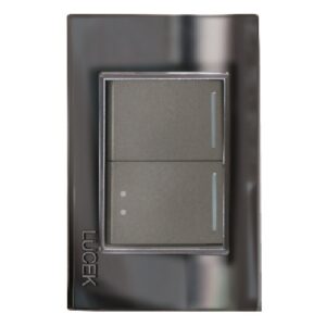 PLACA CON 1 INTERRUPTOR SENCILLO Y 1 DE ESCALERA DE 1.5 MÓDULOS ESPEJO NEGRO